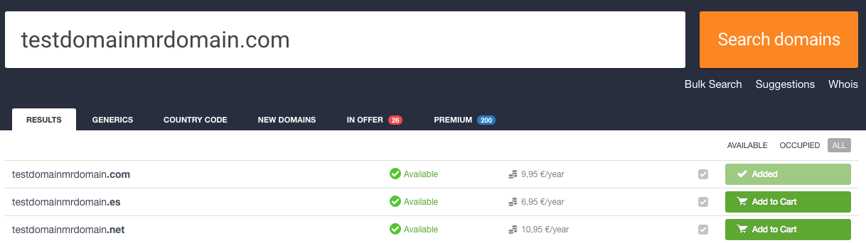 - You will be able to purchase the desired hosting once you have added the domain to the shopping cart. To do this, enter the desired domain in the domain search engine on the homepage and click the "Search domains" button (if you prefer, you can also directly access our search engine