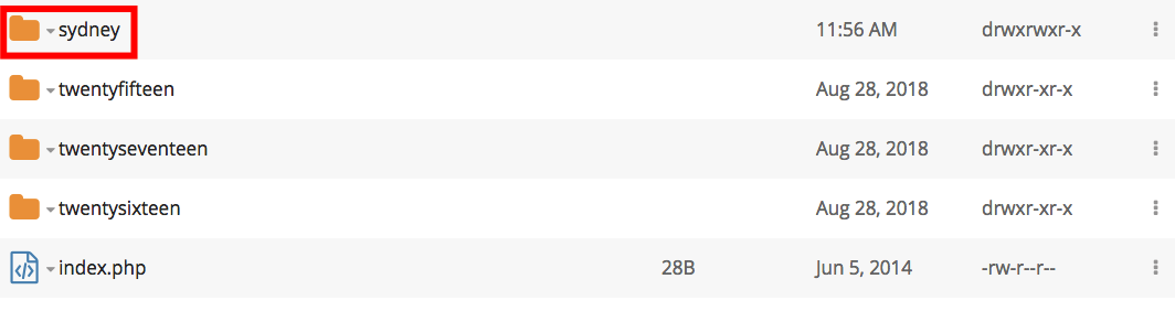 To complete the process, we will upload and decompress the .zip file of our theme. Once done, our folder will look similar to this one: