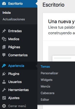 Para instalar un tema, lo primero que debemos hacer es acceder al apartado administrador de WordPress. Una vez dentro, procederemos a acceder a Apariencia - Temas