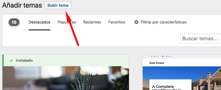 Para ello desde la pantalla de Añadir un nuevo tema, pulsaremos en el botón de la parte superior llamadoSubir tema